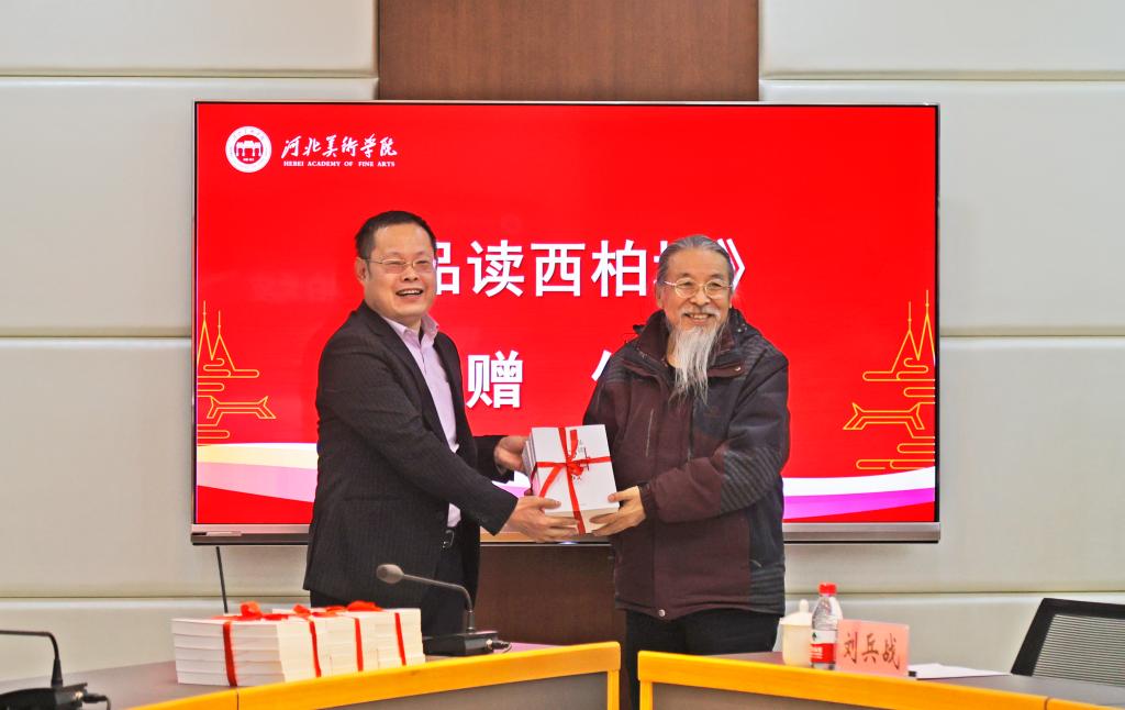 甄忠义校长作为受赠单位代表对各位领导热心教育事业、心系青年学生表示诚挚感谢,表示《品读西柏坡》的到来恰逢其时,不仅有助于改善各单位馆藏结构,提升馆藏质量,而且对于促进地方文献、档案史料建设,推进党史学习教育、爱国主义教育,传承和弘扬西柏坡精神都具有重要的意义。