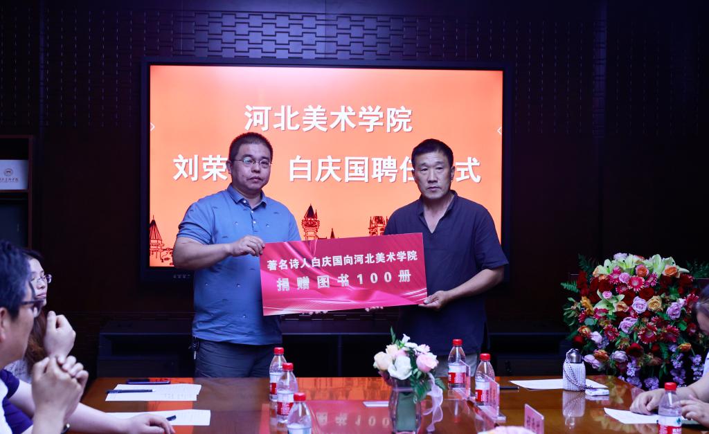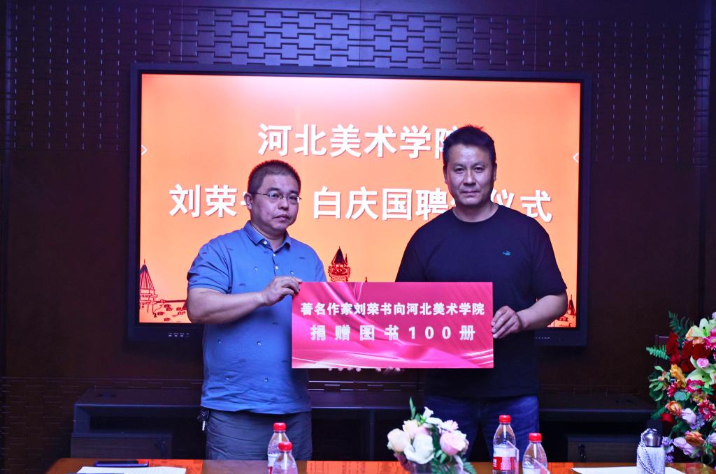 刘荣书、白庆国老师先后发言,他们感谢beat365在线体育官网登录入口领导班子及全体师生的支持,并就未来的工作规划作了详细介绍。他们表示,在今后的工作中,将充分发挥自身在文学艺术创作领域的引领作用,利用好学校为其搭建的艺术交流平台,创作出更多优秀作品,推动beat365在线体育官网登录入口文学艺术创作水平迈向新的台阶。同时,为丰富学校的图书资源,满足广大师生对文学艺术作品的需求,两位老师决定向学校图书馆捐赠图书200册。