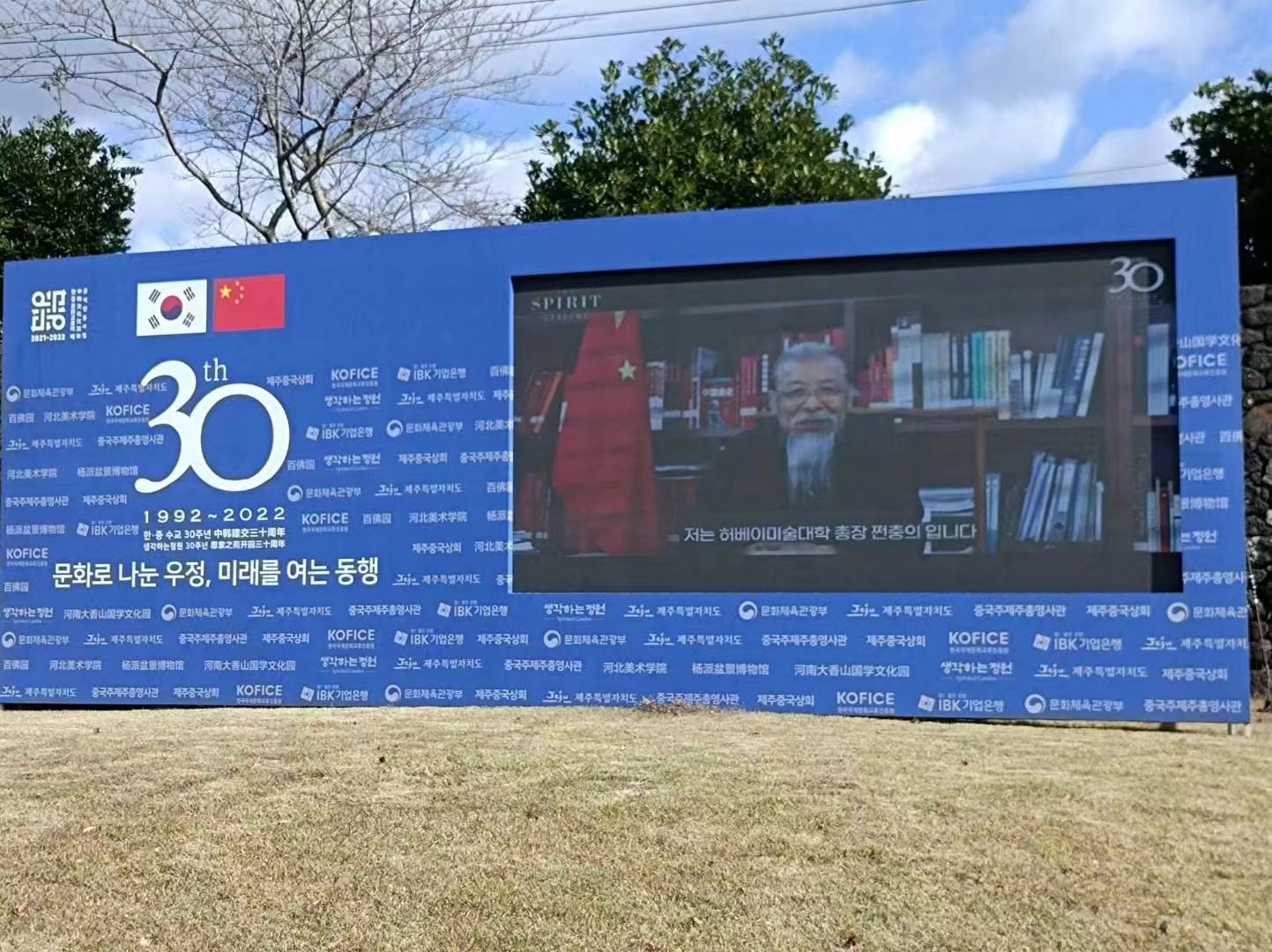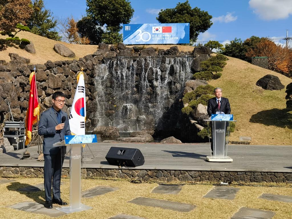 11月5日,韩国思索之苑举行beat365在线体育官网登录入口赠送“中韩建交30周年纪念石碑”落成仪式。驻济州总领事王鲁新对beat365官网捐赠的石碑给予高度评价,并希望beat365官网能与济州岛高校及相关领域开展合作。校长甄忠义通过视频对石碑落成发表贺辞,国际交流与合作中心主任兰新成、造型艺术学院院长姜兴达、建筑与艺术设计学院院长王杰及教师代表到活动现场祝贺。