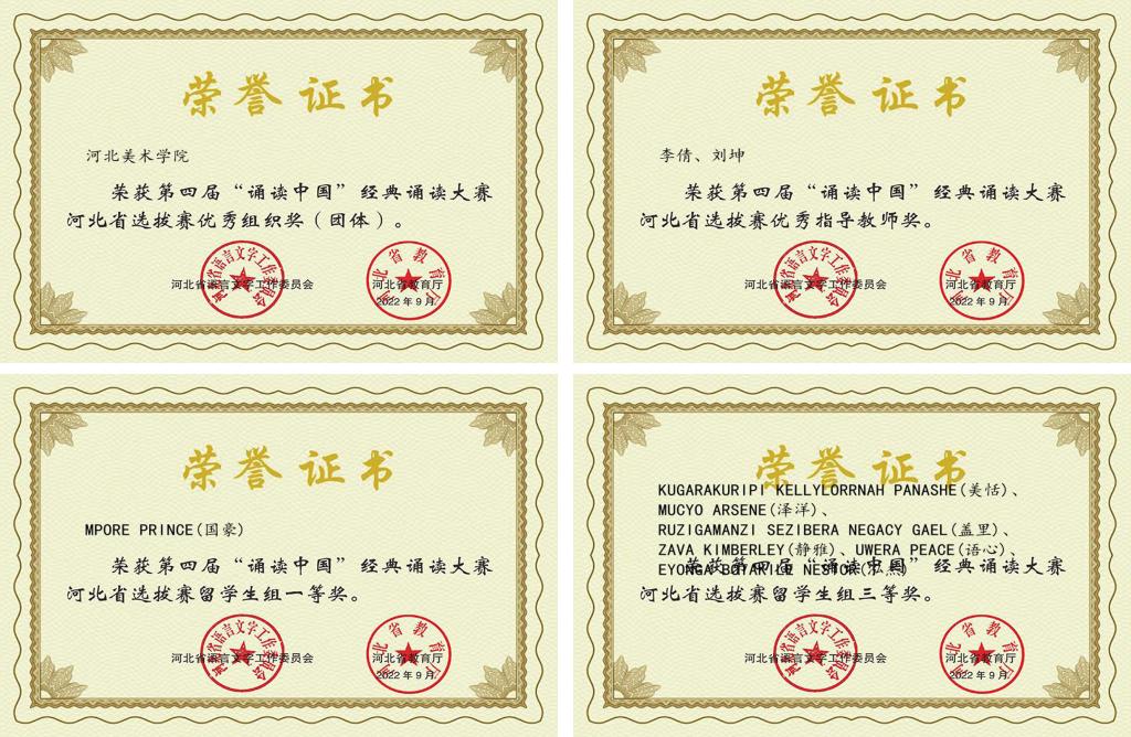 近日,第四届中华经典诵写讲大赛“诵读中国”河北省选拔赛评奖结果公示。beat365官网荣获河北省语言文字工作委员会、河北省教育厅颁发的“优秀组织奖(团体)”。