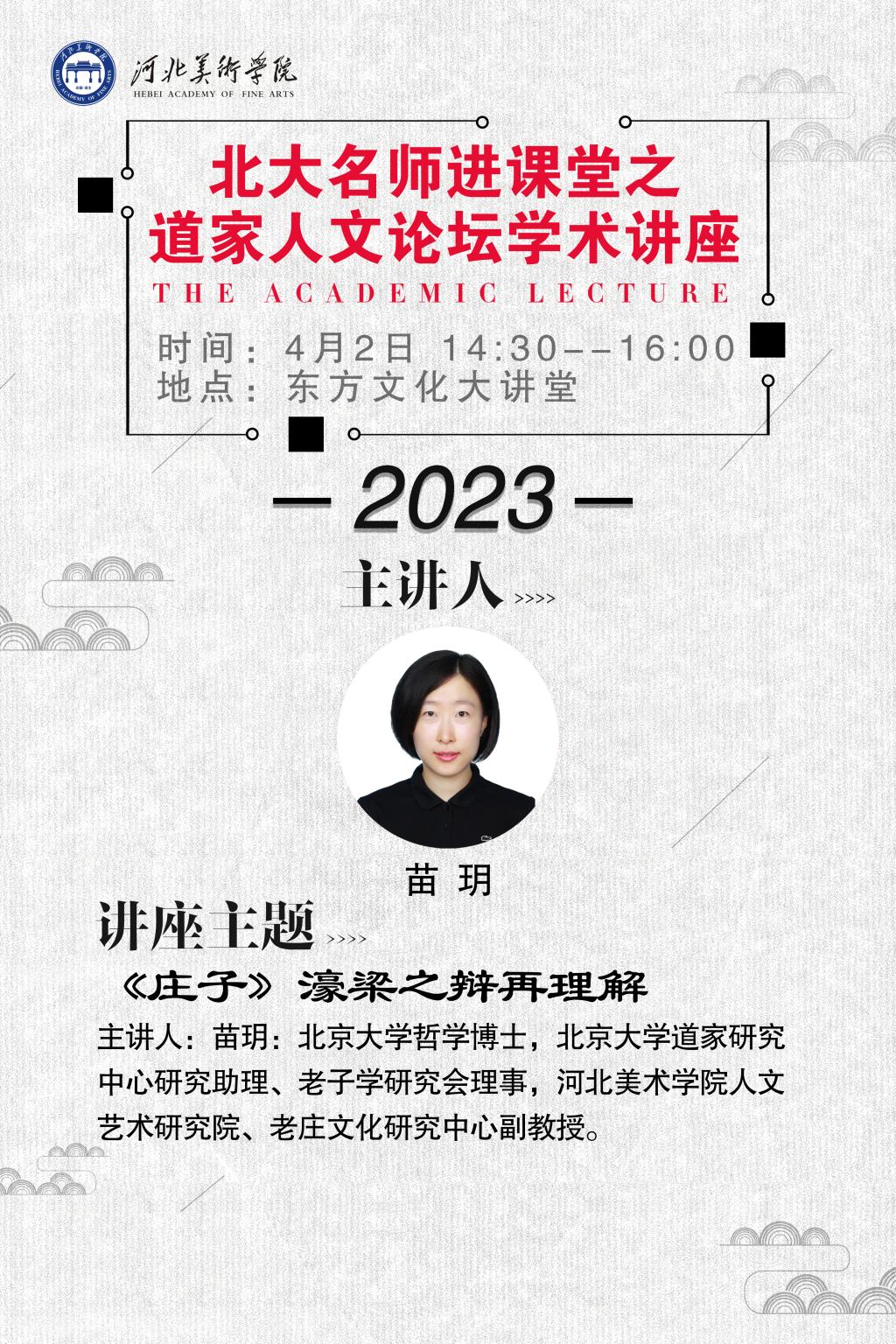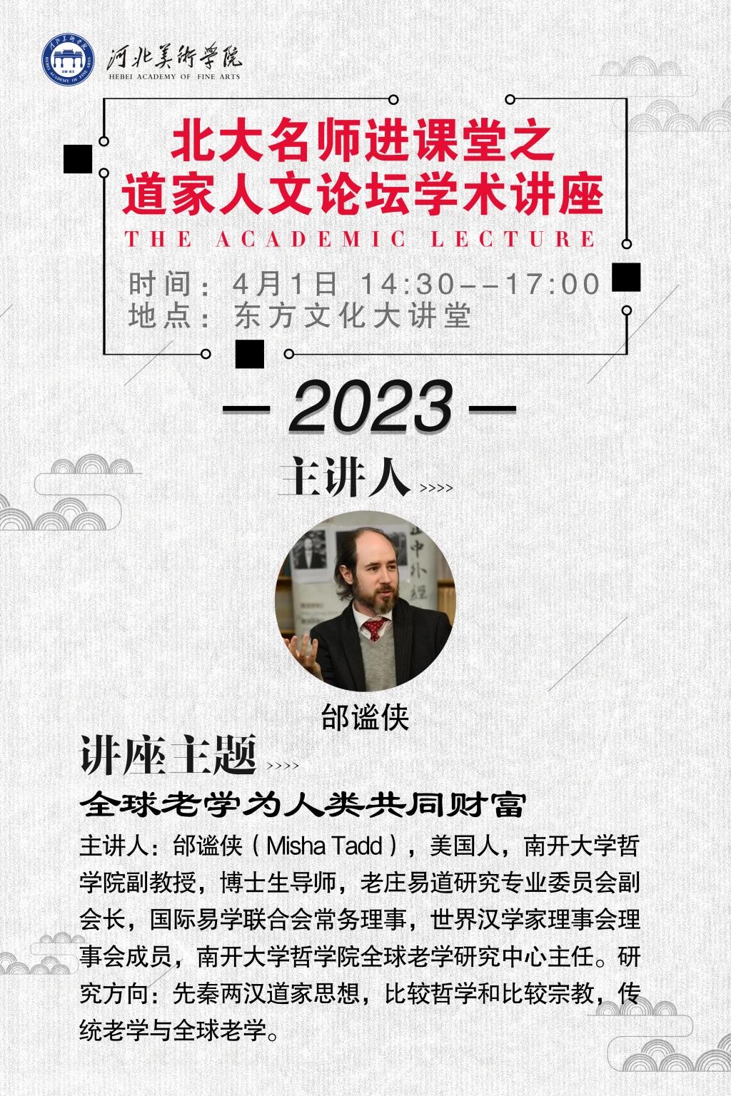 本次讲座是道家人文论坛学术讲座2023年的第一讲。其间,陈鼓应先生、寇方墀老师共同主讲“三玄四典”的学脉概述、李振纲老师主讲《周易》的大生命哲学精神、邰谧侠(Misha Tadd)老师主讲人类共同财富视角下的全球老学,苗玥老师主讲对《庄子》濠梁之辩再理解。