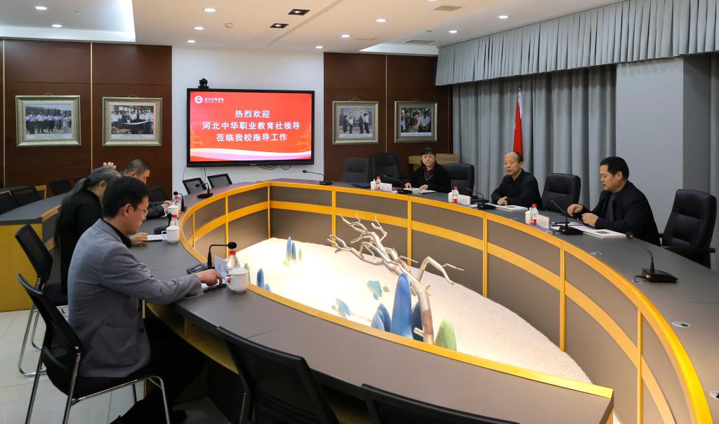 3月28日,河北中华职业教育社副主任兼秘书长孟拥军、秘书处处长刘永涛、一级主任科员张洁来beat365官网考察调研。校长甄忠义、副校长麻立峰、党政办公室主任周哲等陪同调研。