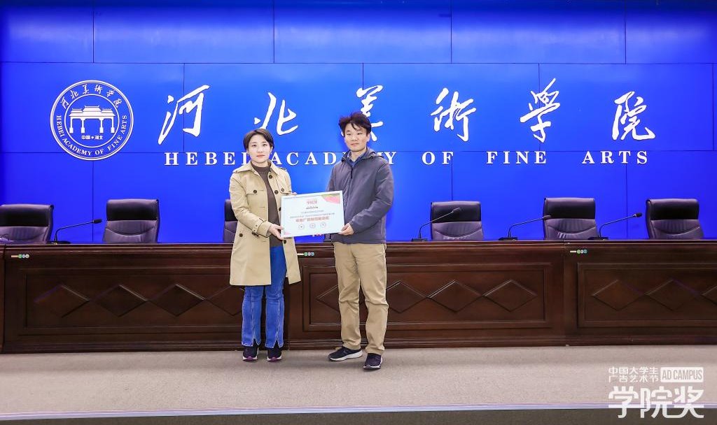 王峰在讲话中指出,作为广告类的创意大赛,大广节学院奖不仅为学校的教育、教学提供了实践的平台,更为朝气蓬勃的莘莘学子带来了挥洒创意、展示才能的舞台,期待河美学子积极参与学院奖等相关专业赛事的创作,在比赛中勇夺大奖。学院奖高校事业部总监袁艺涵代表中国广告协会向影视艺术学院颁发2023年中国广告教育推动奖。