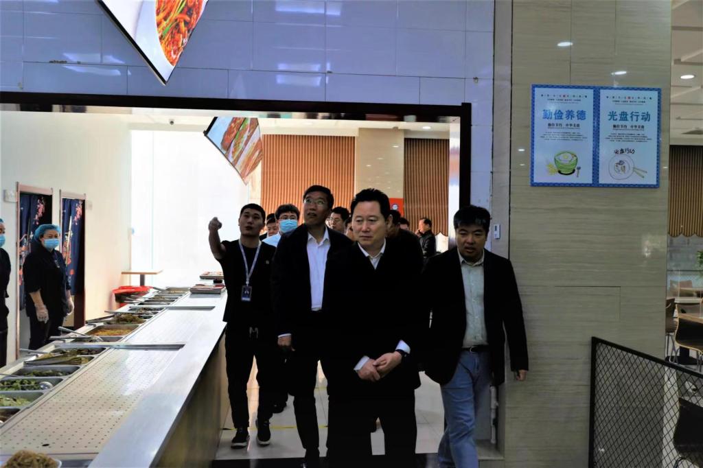 梁昆实地查看了食堂的环境卫生、原料储存、生产制作间、食品包装材料和清洁消毒等设备设施。
