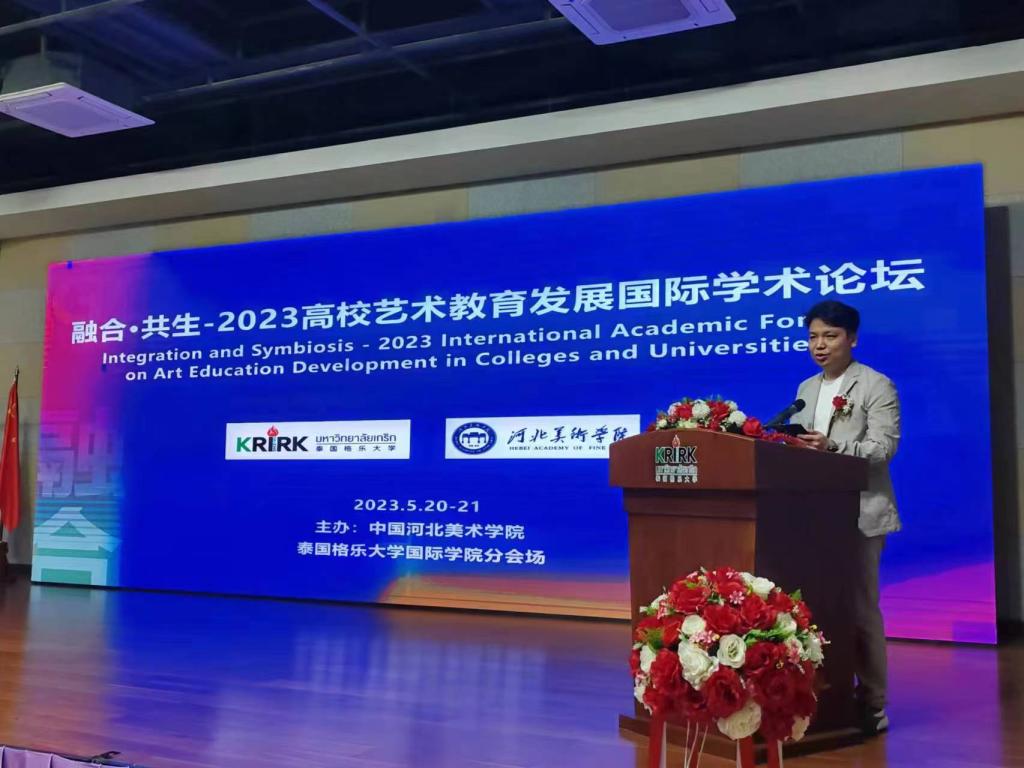 甄墨致欢迎辞。他强调,数字时代的发展为当代艺术教育发展带来前所未有的机遇和挑战,在融合的大趋势下,beat365在线体育官网登录入口将积极寻求与世界各国高校的友好合作,真诚与各国专家学者共同探索新思维、新方法、新途径,为艺术科技、文化教育的融合发展、国际化艺术人才培养、中外文化交流贡献更大的力量。泰国格乐大学在读硕博士围绕主题作了精彩的学术发言。