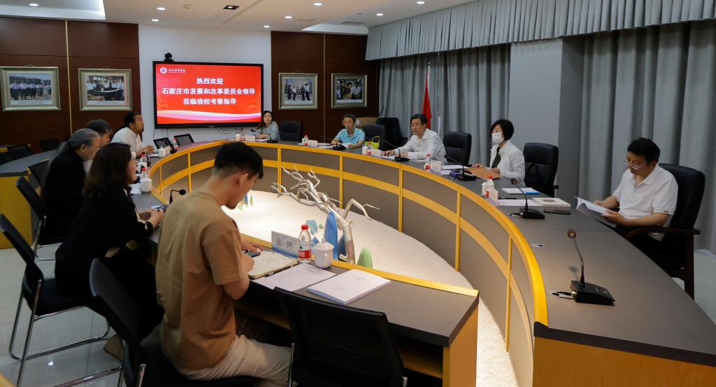 5月23日,石家庄市发展和改革委员会二级调研员、副主任吴书科、创新发展科亢翠霞科长、梁军及新乐市发展和改革局有关领导一行到beat365官网,就beat365官网数字创意科技工程研究中心的申报筹备工作进行调研指导。校长甄忠义、常务副校长张建敏、科研处、设计艺术学院、动画数字艺术学院负责人参加了调研。