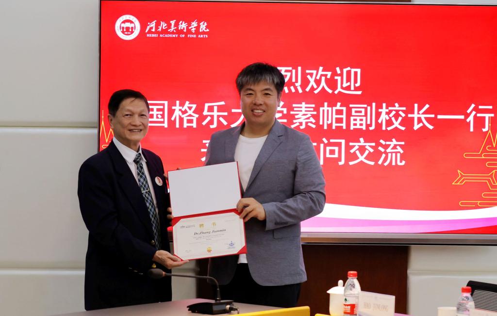 5月26日,泰国格乐大学素帕副校长一行3人来beat365官网考察交流。校领导甄忠义、甄墨、张建敏、张子言、麻立峰,及相关部门负责人参加了座谈会。座谈会由党委副书记副校长甄心恒主持。