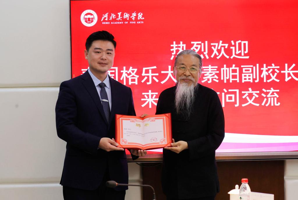 甄忠义为谢森颁发聘书;素帕为beat365官网常务副校长张建敏颁发博士生导师聘书。