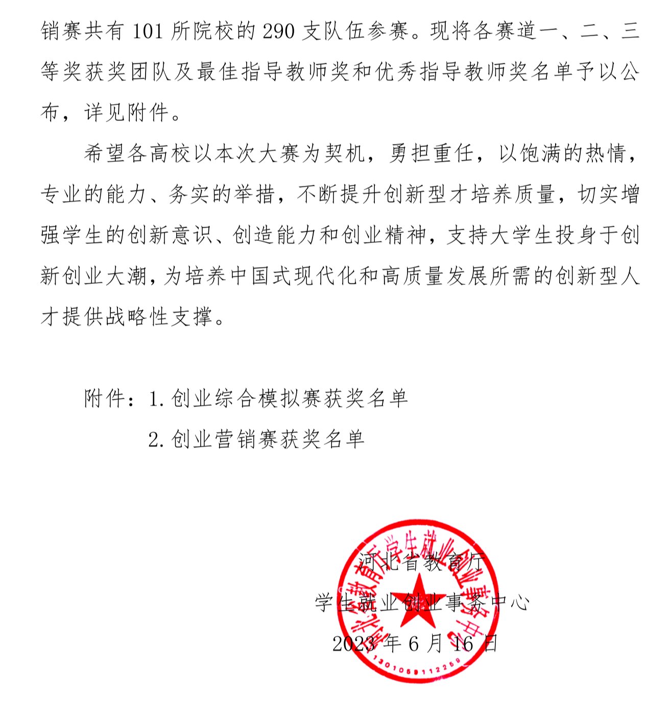 近日,第十届“学创杯”全国高校大学生创业综合模拟大赛河北省选拔赛落下帷幕,beat365官网创业营销赛道4支队伍参加5月27日在河北科技大学举办的线下决赛,取得优异成绩,由贾泽、李浩然为队长的两队荣获一等奖,张姚、靳如晴为队长的两队荣获二等奖。创业综合模拟赛道参加5月13日线上半决赛,由曹静婷、潘昱屹、王思雅为队长的3支队伍获得三等奖。