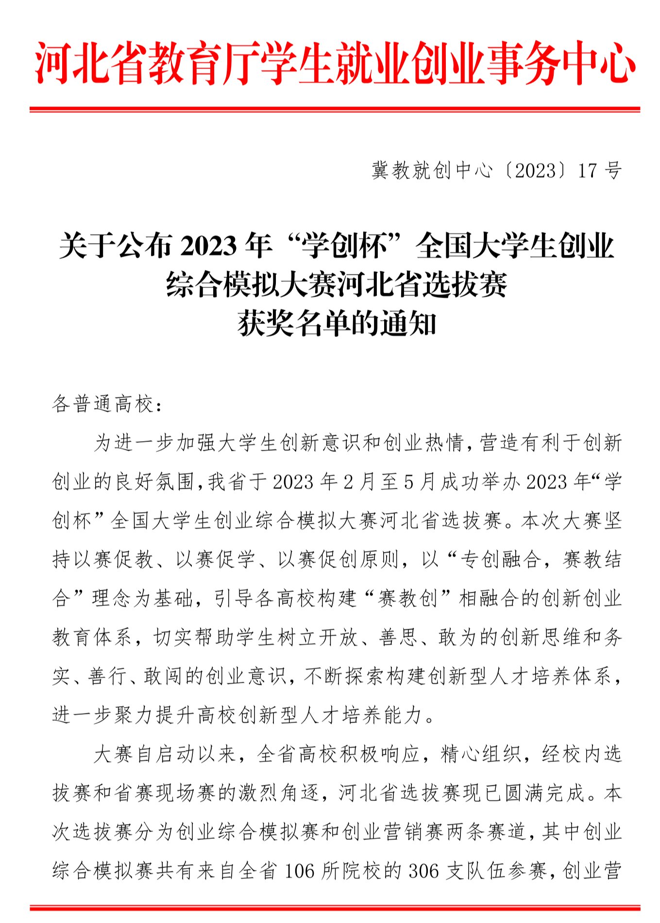 该赛事由高等学校国家级实验教学示范中心联席会经济与管理学科组和中国陶行知研究会主办、河北省教育厅学生就业创业指导中心主办、河北科技大学承办,全省共有来自106所高校的306支代表队参加创业综合模拟赛,共有101所院校的290支代表队参加创业营销赛。该赛事一直着力于推动国内高校创新创业教育实践活动的发展,目前已被列入中国高等教育学会发布的《2022年全国普通高校大学生竞赛分析报告》,是影响力较大的84项赛事之一。