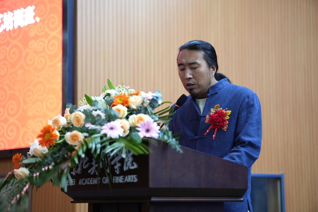 甄忠义向远道而来的领导、授课专家和学员表示热烈欢迎,他简要介绍了学校的基本情况,并表示学校以非物质文化遗产传承人研修培训为契机,不断推进高校设计艺术教育与传统技艺传承相结合,不断探索非遗传承新模式,积极投身非物质文化遗产保护传承和创新工作。