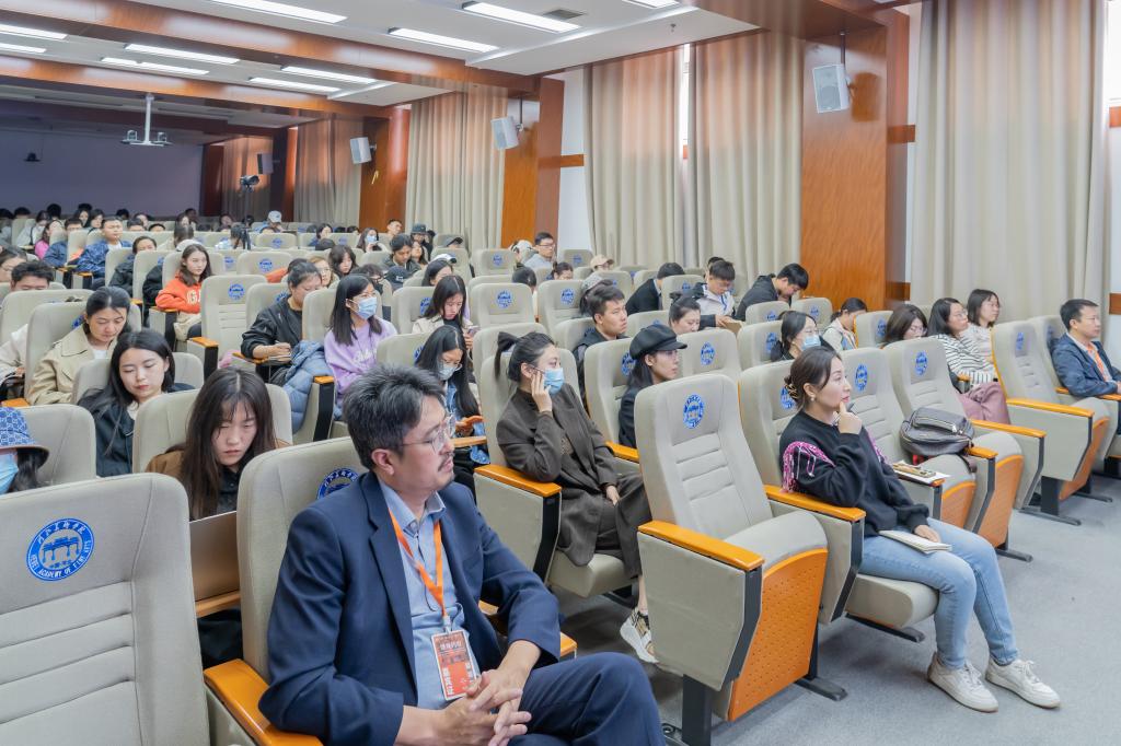 刘竞雄在发言中表示,十分有幸成为“博观约取”系列巡展的策展人,也是对她自己学生时代的一场艺术化叙事。她在策划这场展览的时候,不仅将巡展定义为一个展览,而是将西安美院造型艺术部的教学成果带进各大高校,在新时代美育的语境中带入社会面,和策展团队策划打造丰富多样,板块全面的活动。通过:观摩课工作坊、学术讲座、学业规划、就业指导、展厅美育课堂等突破传统课堂教学的方式,使艺术教育不仅存在于西安美院的课堂,更能够与各大院校产生思想与科研的交流碰撞,与各位师生产生美美与共的体验,和社会大众及各年龄段的孩子们一起种下涵养美丽心灵的种子。