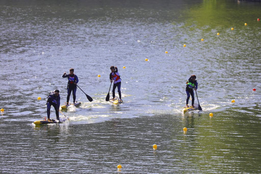 此次赛事为期两天,分为公开组、高校组,设桨板瑜伽、持桨瑜伽、桨板体适能、桨板竞速、桨板定向五大项目,吸引了来自全国各地的26支参赛队伍、200余人参赛。