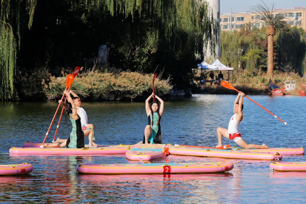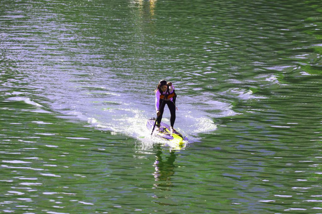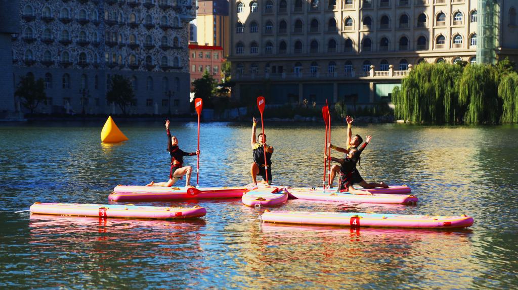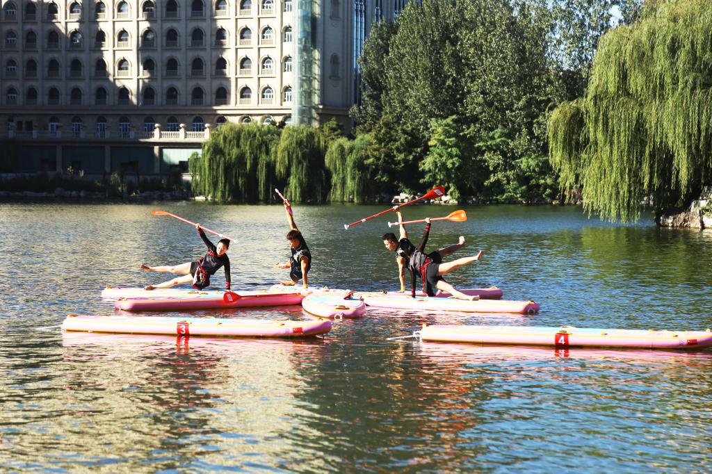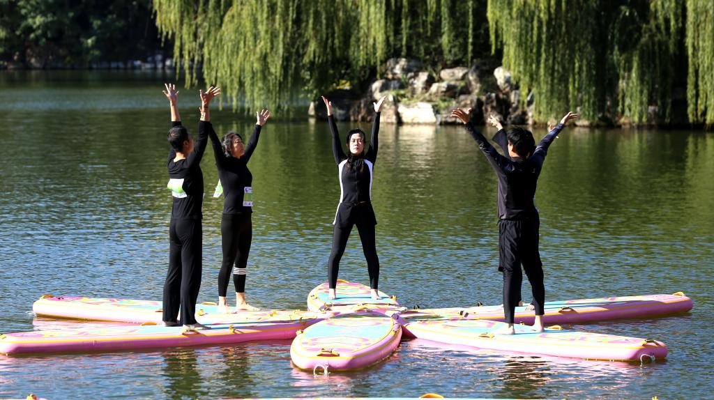 桨板运动是一项极具挑战性和观赏性的水上运动,融合了划桨、滑行、平衡等多项运动。桨板瑜伽是近年来兴起的时尚健身运动,不仅可以增强练习者身体的核心力量、提高身体的灵活性,还有助于提高注意力,带来身心与山水相融的愉悦感,受到了很多人的喜爱和追捧。