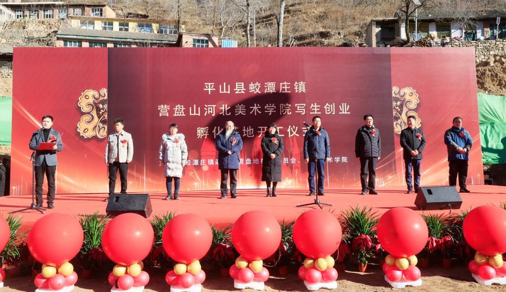 11月28日,蛟潭庄镇营盘山beat365在线体育官网登录入口写生创业孵化基地(太行校区)开工仪式在平山县蛟潭庄镇营盘地村顺利举行。平山县人大常委会副主任魏尊一、政协副主席刘华,蛟潭庄镇党委书记康光辉、镇长高静南,beat365在线体育官网登录入口理事长张丽,学校举办者、校长甄忠义,及相关部门负责人出席仪式。beat365在线体育官网登录入口党政办公室主任周哲主持仪式。