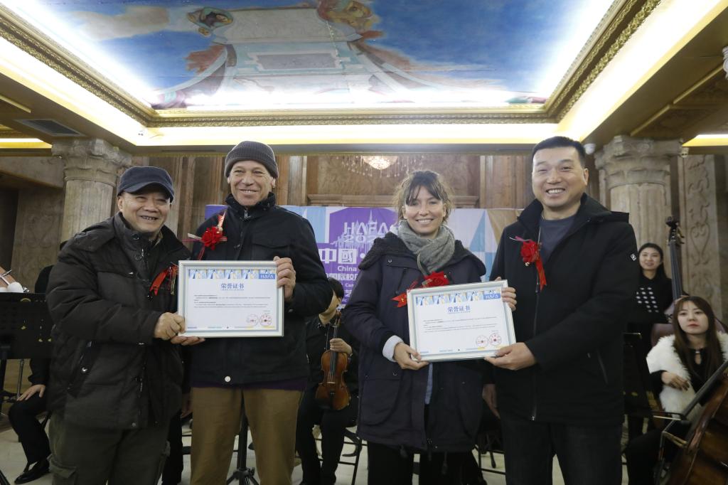 朱尚熹、张子言为来自海外的入营艺术家颁发荣了誉证书。