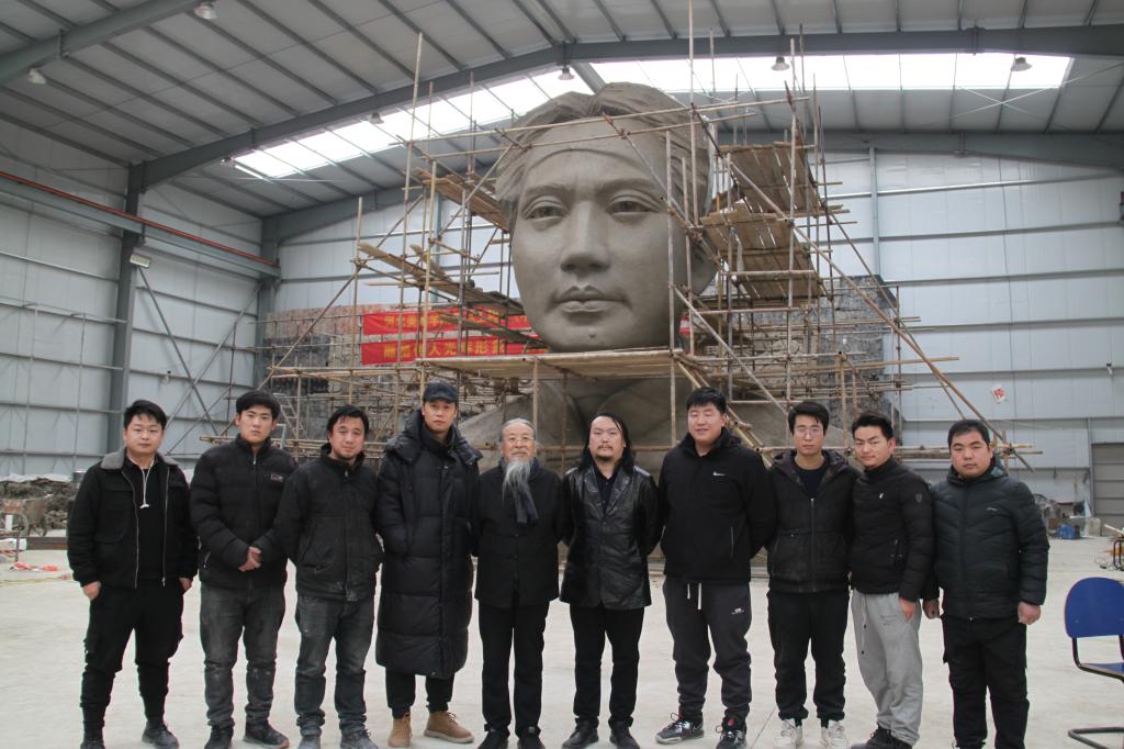 beat365在线体育官网登录入口校长甄忠义与师生在泥塑前合影留念