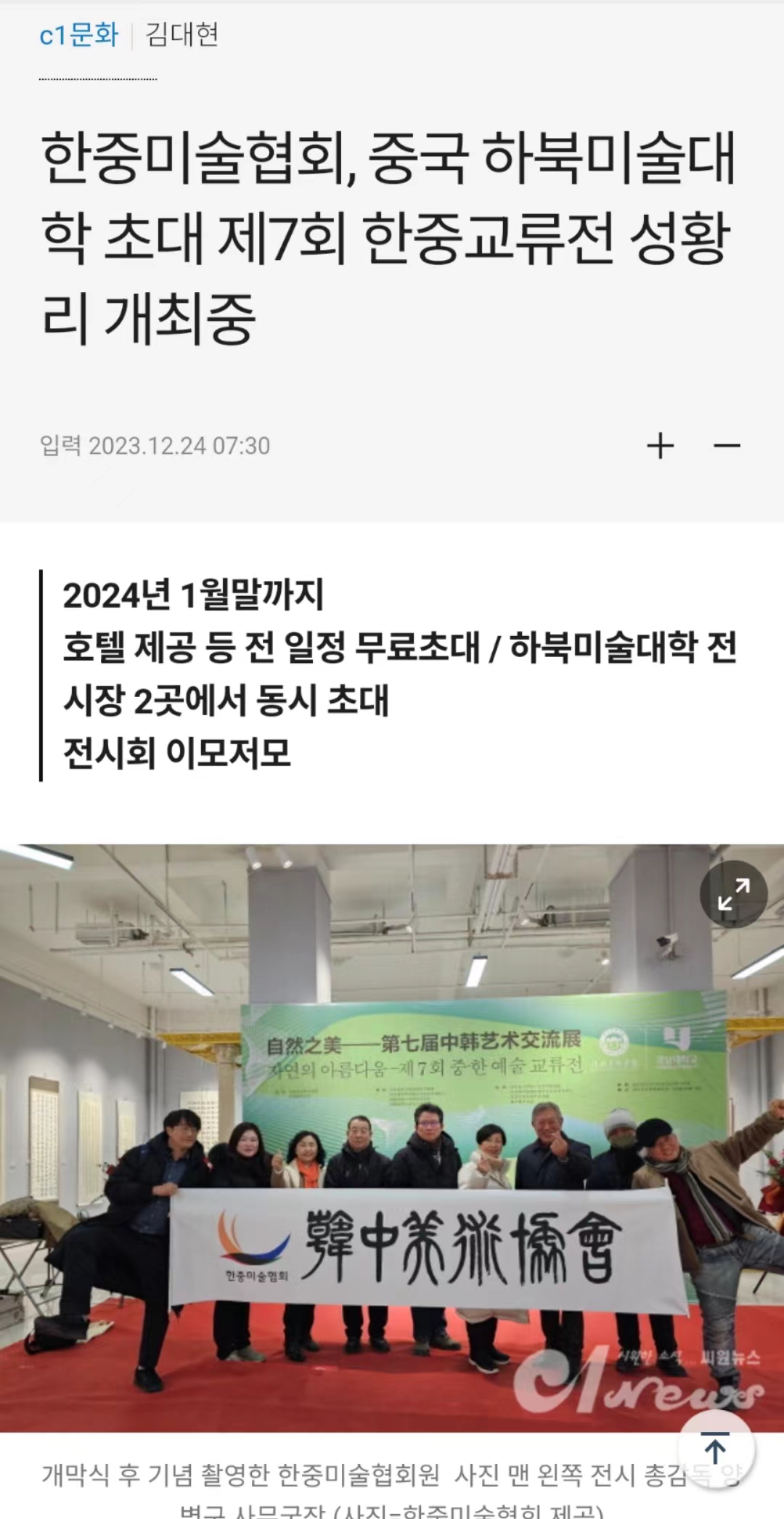 2.뉴스(c1news)한중미술협회, 중국 하북미술대학 초대 제7회 한중교류전 성황리 개최중韩中美术协会beat365在线体育官网登录入口邀请展第七届韩中艺术交流展展示中)