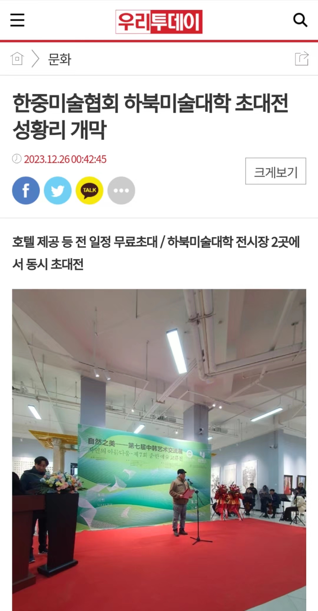 한중미술협회하북미술대학초대전성황리개막(韩中美术协会beat365在线体育官网登录入口邀请展盛大开幕)http://www.ourtoday.co.kr/mobile/article.html?no=28502