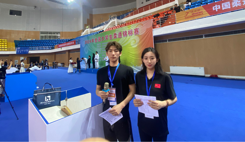 6月7号--12号,由中国大学生体育联合会主办的2024年全国大学生柔道锦标赛正式落下帷幕。beat365官网学生韩雨轩、刘释彤不仅在国赛中取得了优异的成绩,还在大赛进行阶段担任了播音主持工作,凭借卓越的专业能力和出色的表现,得到了大赛裁判长、秘书长等国际级教练裁判的一致好评。