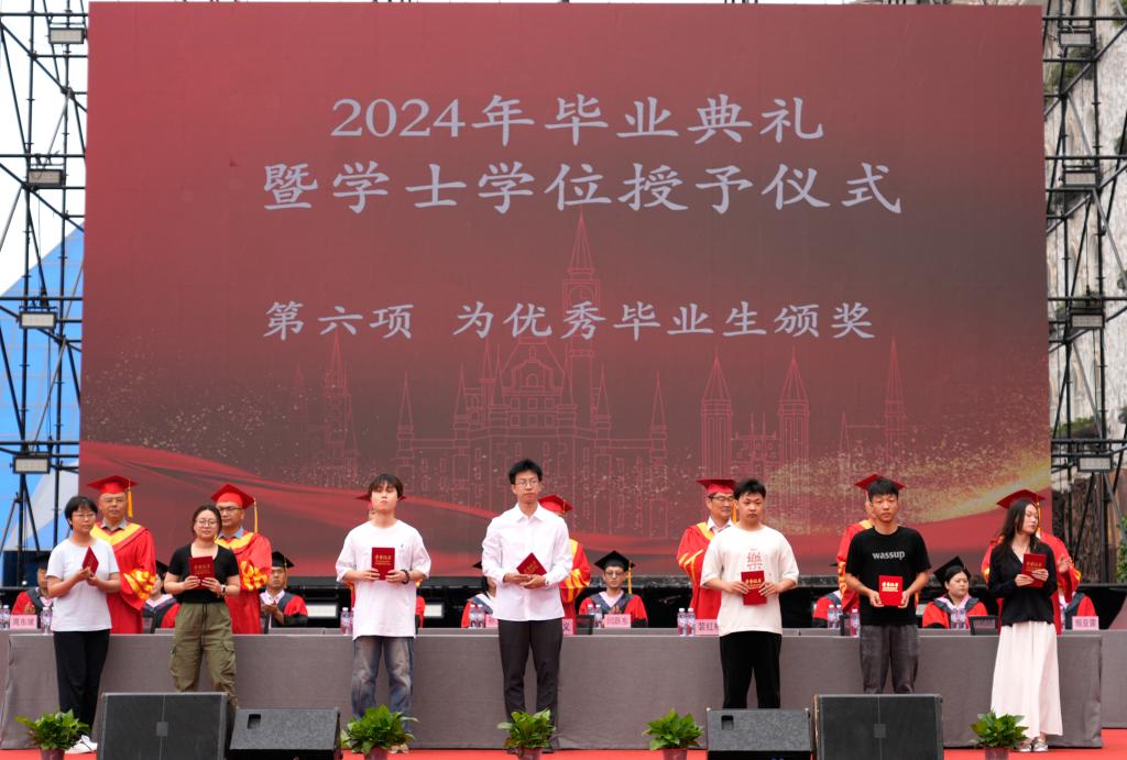 党委副书记、副校长麻立峰宣读《beat365在线体育官网登录入口关于表彰2024届省级、校级优秀毕业生的决定》。与会领导为优秀毕业生代表颁发荣誉证书。
