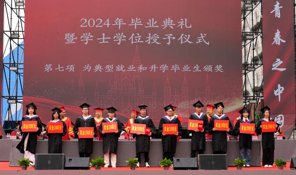 在典礼上,与会领导为就业、创业、升学代表毕业生颁发“就业之星”“基层就业之星”“考研之星”“创业之星”荣誉证书。