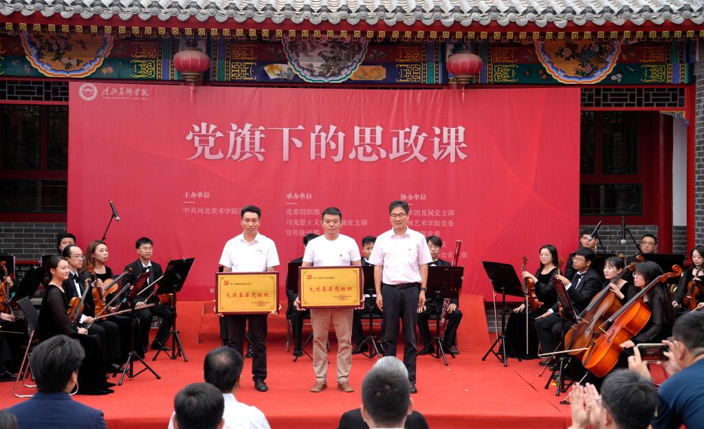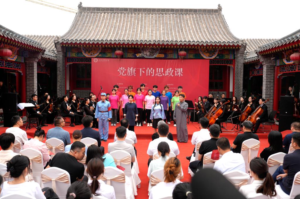 “党旗下的思政课”在交响乐团演奏红色经典曲目、歌唱家演唱《唱支山歌给党听》中开讲。气势恢宏的交响乐演奏《曙色》《把一切献给党》《我们走在大路上》,声情并茂的朗诵《战友》《破晓》《平凡与伟大》,富有韵律的快板《我心向党》,震耳欲聋的大合唱《没有共产党就没有新中国》,带领大家重温中国共产党百年奋斗的峥嵘历史,进一步坚定了在场每一位共产党员的信仰与信念。