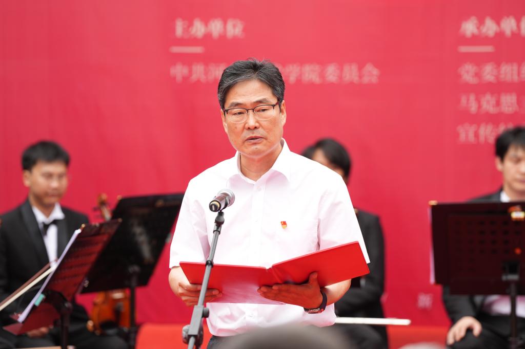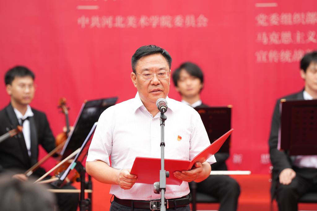 裴红彬致辞。他指出,党史教育馆的成立,是校馆共建“大思政课”模式的具体体现,将成为学校开展思政课教学、课程思政和党建活动的重要阵地。作为新时代的教育工作者,有责任、有义务传承好党的红色基因,赓续共产党人精神血脉。希望全校师生充分利用“党史教育馆”和党建主题作品展的平台,开展形式多样的党史学习教育,为全面建设社会主义现代化国家、实现中华民族伟大复兴的中国梦贡献力量。