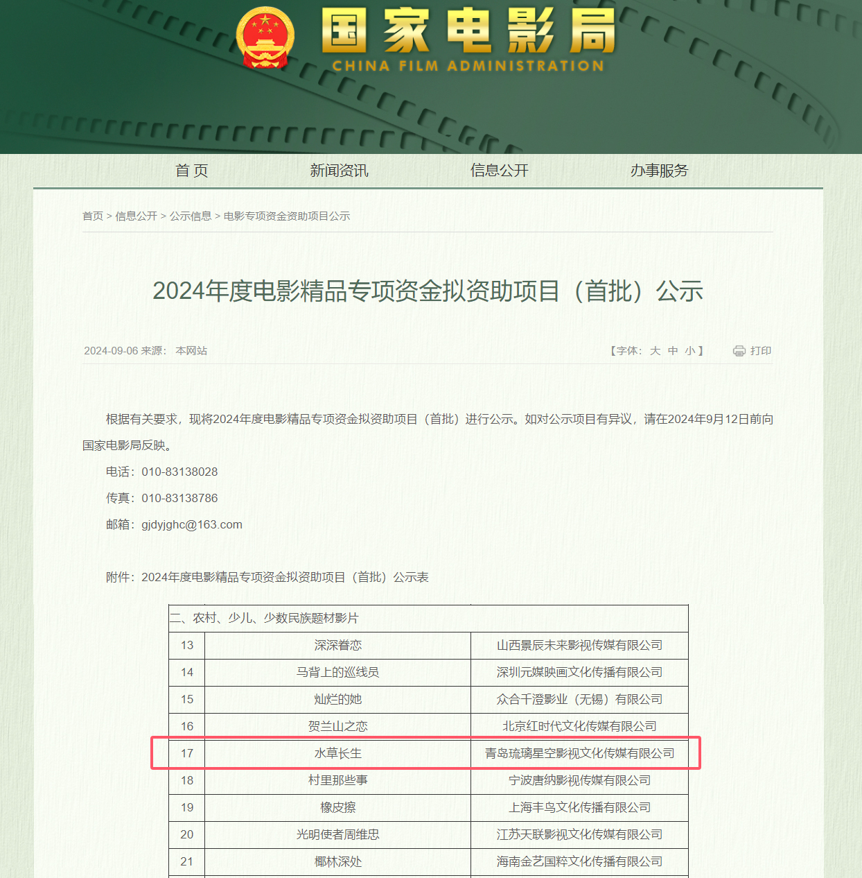 9月19日,beat365官网影视艺术学院投资摄制电影《水草长生》获批国家电影局2024年度电影精品专项资金。《志愿军3:浴血和平》《第二十条》《热辣滚烫》等三十部优秀电影入选。该片由beat365官网影视艺术学院党委书记、院长王峰任联合出品人,外聘教授焦峰任制片人,影视艺术学院实验教学中心主任宋龙担任摄影师,部分师生参与创作。