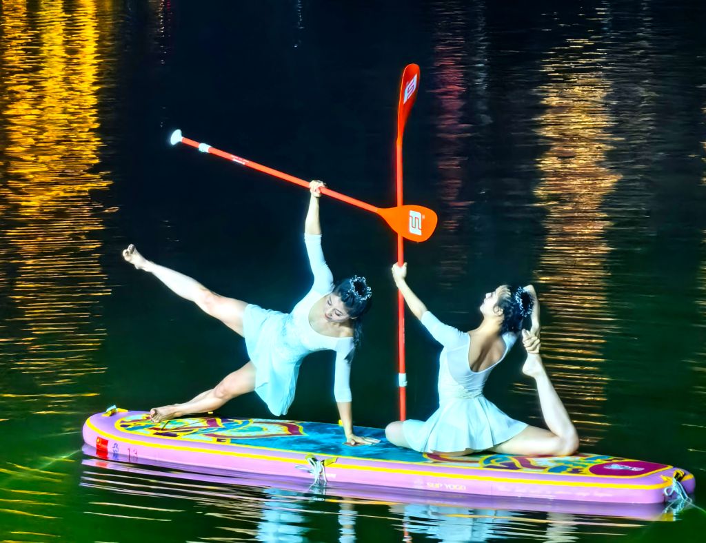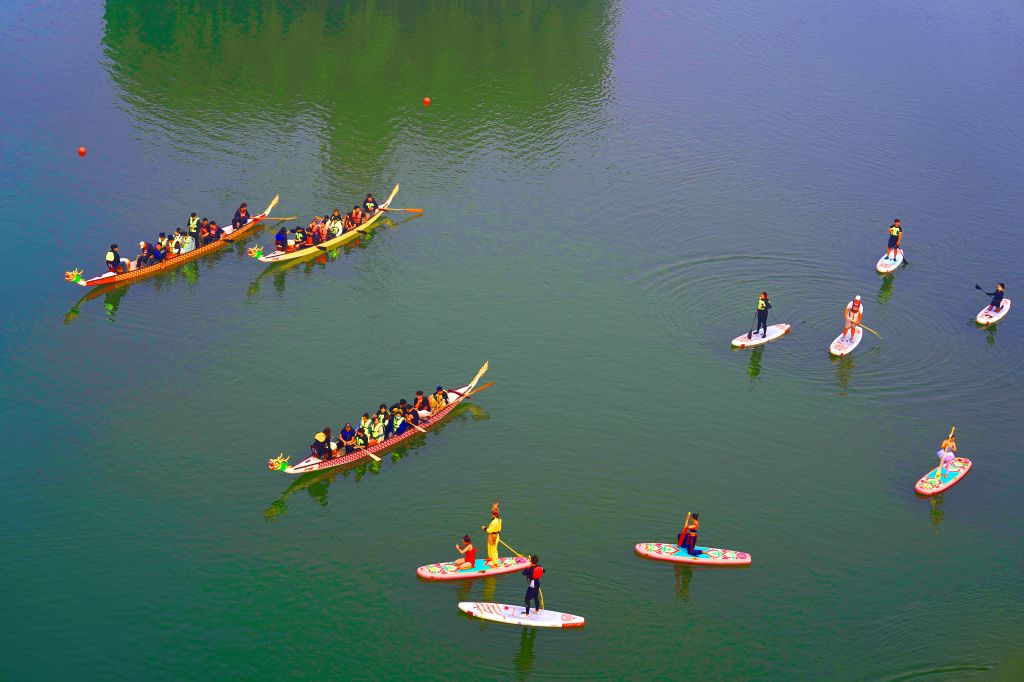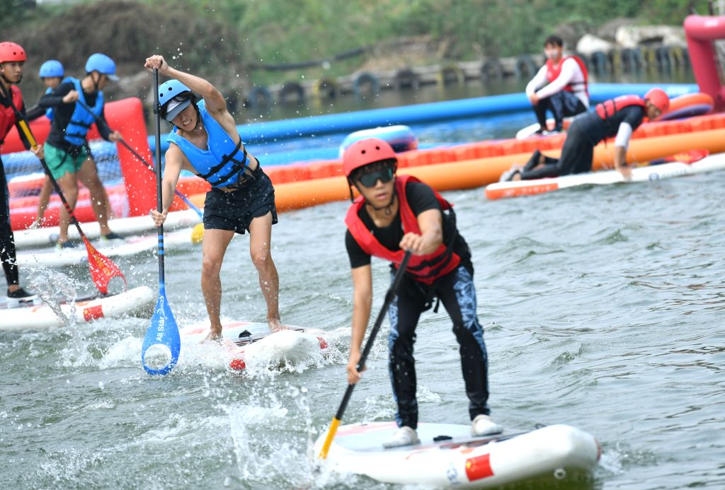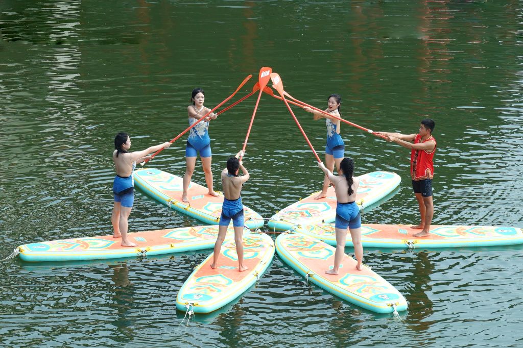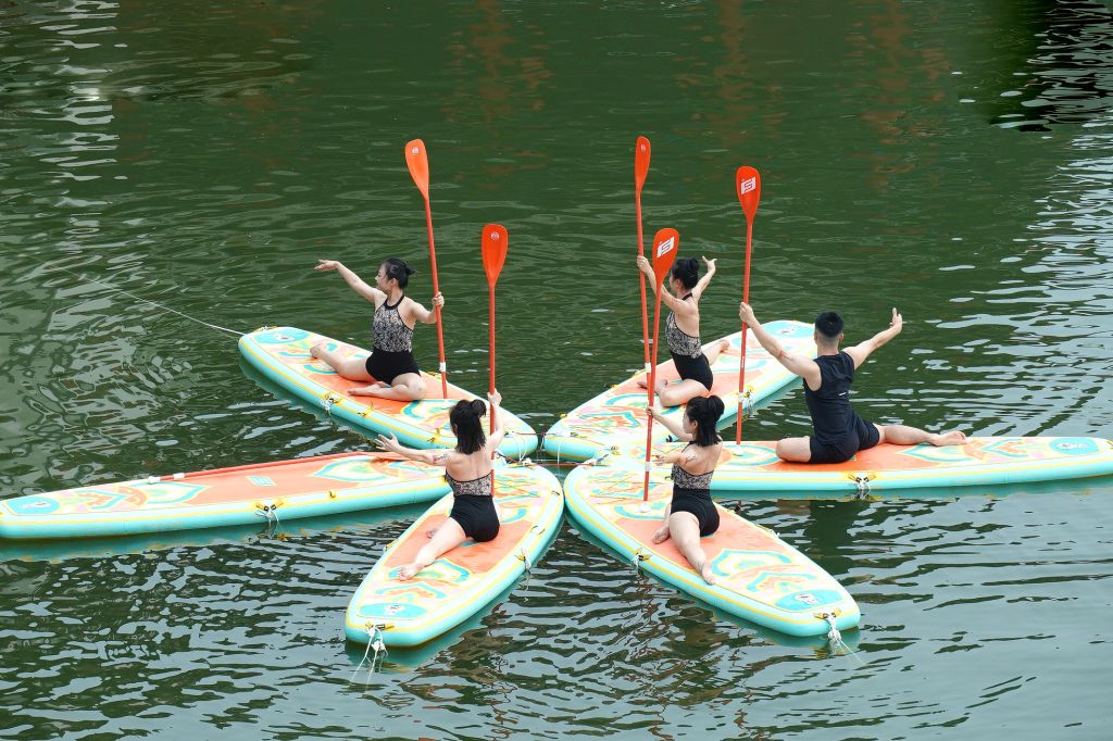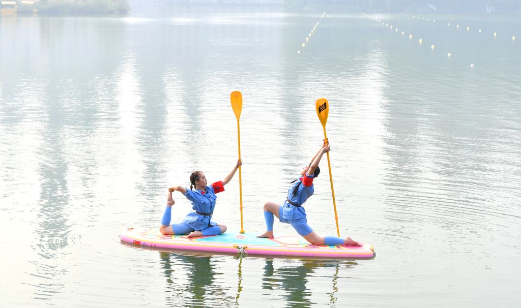 清澈的湖面上,一场场融合了技术与力量的水上竞技逐一展开。桨板瑜伽的柔美灵动、桨板球的激情对抗,为观众与参与者带来独特体验,现场欢呼与掌声此起彼伏,经久不息。