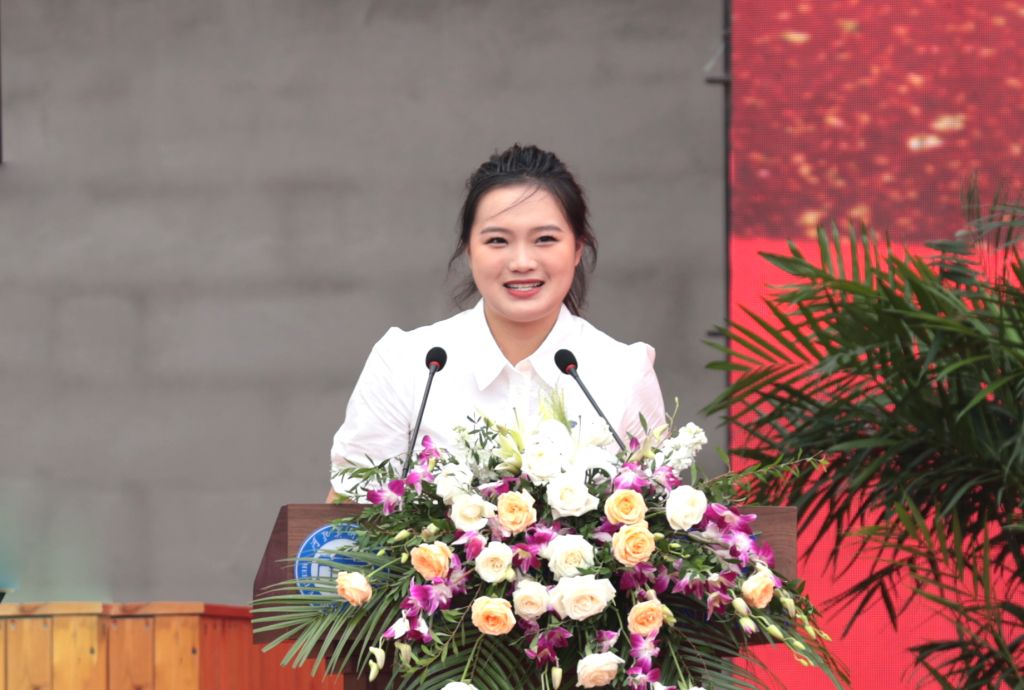 甄忠义致辞。他简要介绍了学校20年来的办学历程,从校园建设、师资队伍、教育教学、科学研究等方面阐述了学校取得的办学成果。他勉励大学生要以“不到长城非好汉”的坚定信心,绽放无坚不摧的“信念”之花;以“不破楼兰终不还”的坚强决心,绽放无所畏惧的“担当”之花;以“不畏苍穹千万里”的坚韧恒心,绽放无往不胜的“奋斗”之花,心怀家国、志存高远,传承校训精神,以青春之我,创青春之国家,成长为“又红又专、全面发展”的河美人,奋力书写不负伟大时代的青春华章。