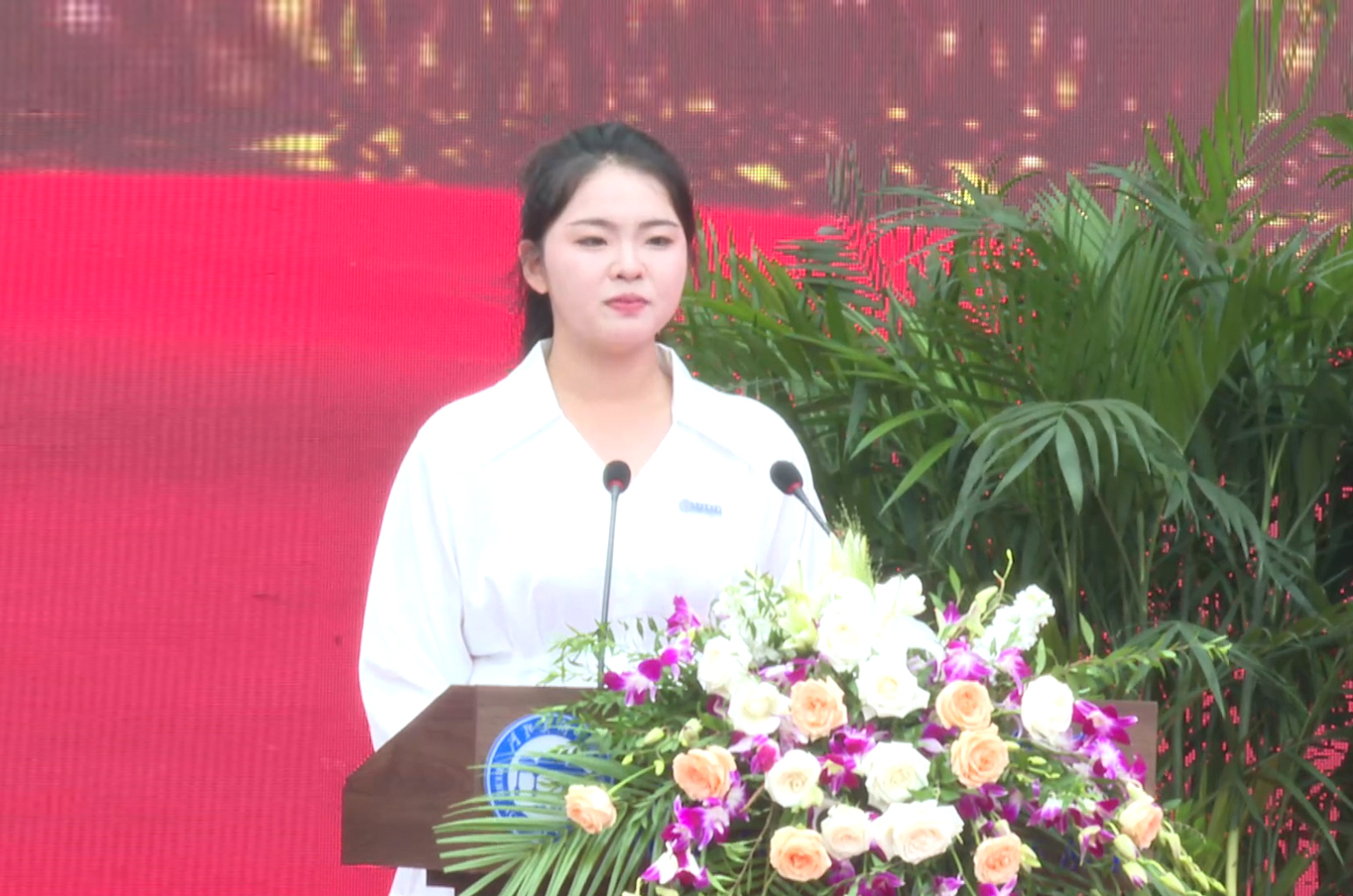 造型艺术学院教师杜建国作为优秀教职工代表、影视艺术学院薛墨缘作为在校生代表鼓励新生,要充分利用学校优势,博采众长,兼收并蓄,成长为堪当民族复兴和国家富强重任的新时代卓越人才。书法学院田书畅作为新生代表、王丹阳作为研究生代表、来自斯里兰卡的明玉作为留学生代表,纷纷表示一定努力学习,不负青春韶华,努力书写属于“河美人”的绚丽篇章。