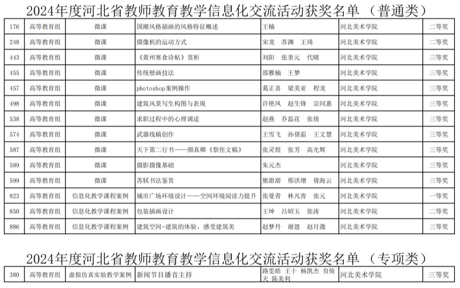近日,河北省教育厅公布2024年度河北省教师教育教学信息化交流活动评选结果,beat365官网共15项作品获奖。其中,一等奖1项、二等奖3项、三等奖11项,张曼青、林凡青、张元团队参赛作品被推荐参加国赛。