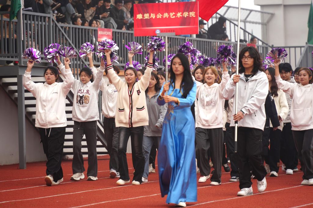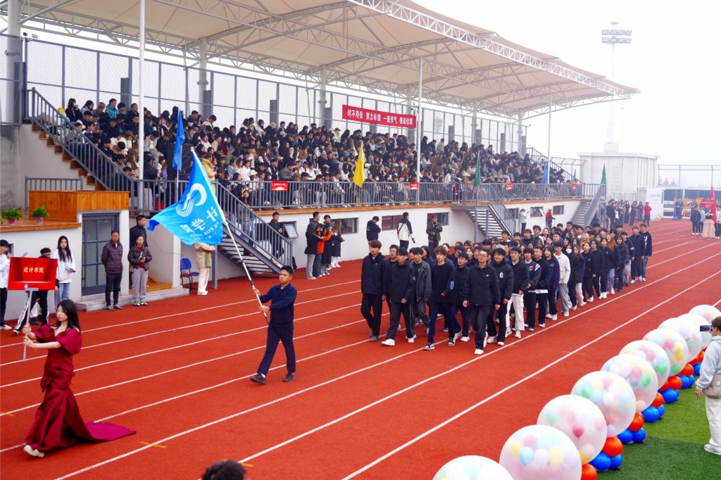 国旗护卫队、旗林队率先入场,旗帜飘扬,气势恢宏。紧随其后的是裁判员方队,步伐稳健,精神抖擞。各二级学院方队最后入场,他们昂首挺胸,喊着响亮的口号,迈着刚劲有力的步伐,展现出河美学子的青春风采。