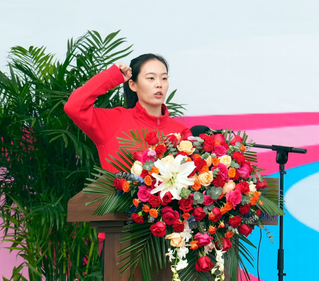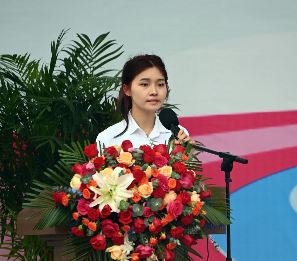 雕塑与公共艺术学院学生刘思彤代表运动员承诺,将严格遵守比赛规则,在赛场上展现出良好的团结友爱精神,秉持公平竞争的理念,文明竞赛。