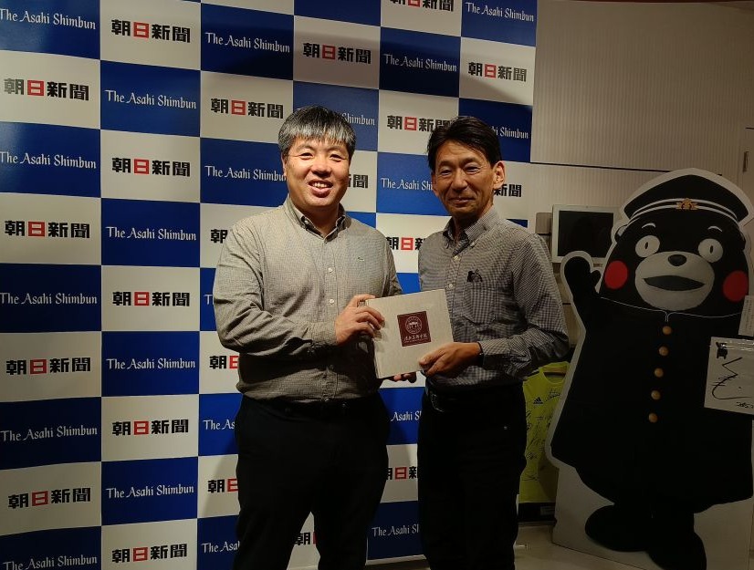 朝日新闻总部商务中心读者服务组经理安井克之(右一)讲解发展历程