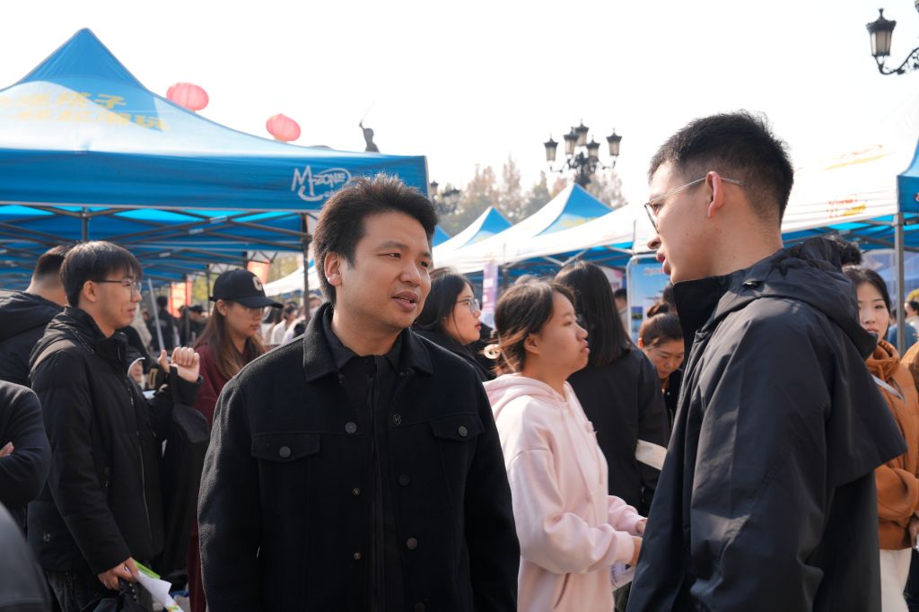 学校执行校长甄墨、副校长麻立峰、党政办公室主任周哲、学生工作处处长周文静等一行到现场调研指导,并与用人单位和参会学生亲切交流。