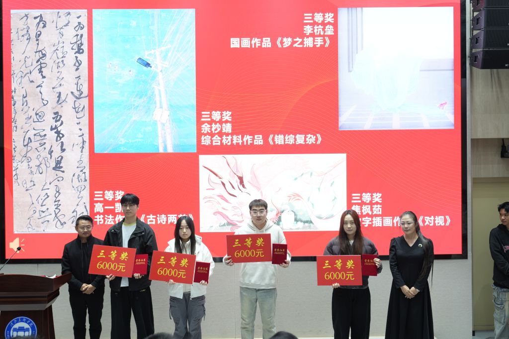 此次“忠学奖”评选,共有7件作品获奖,其中,一等奖作品1件,二等奖作品2件,三等奖作品4件。与会嘉宾及领导为获奖学生颁发获奖证书和奖学金。一等奖获奖学生王茜同学分享了她在学习道路上遇到的挫折与成长,表示将以此次获奖为新的起点,继续努力创作。