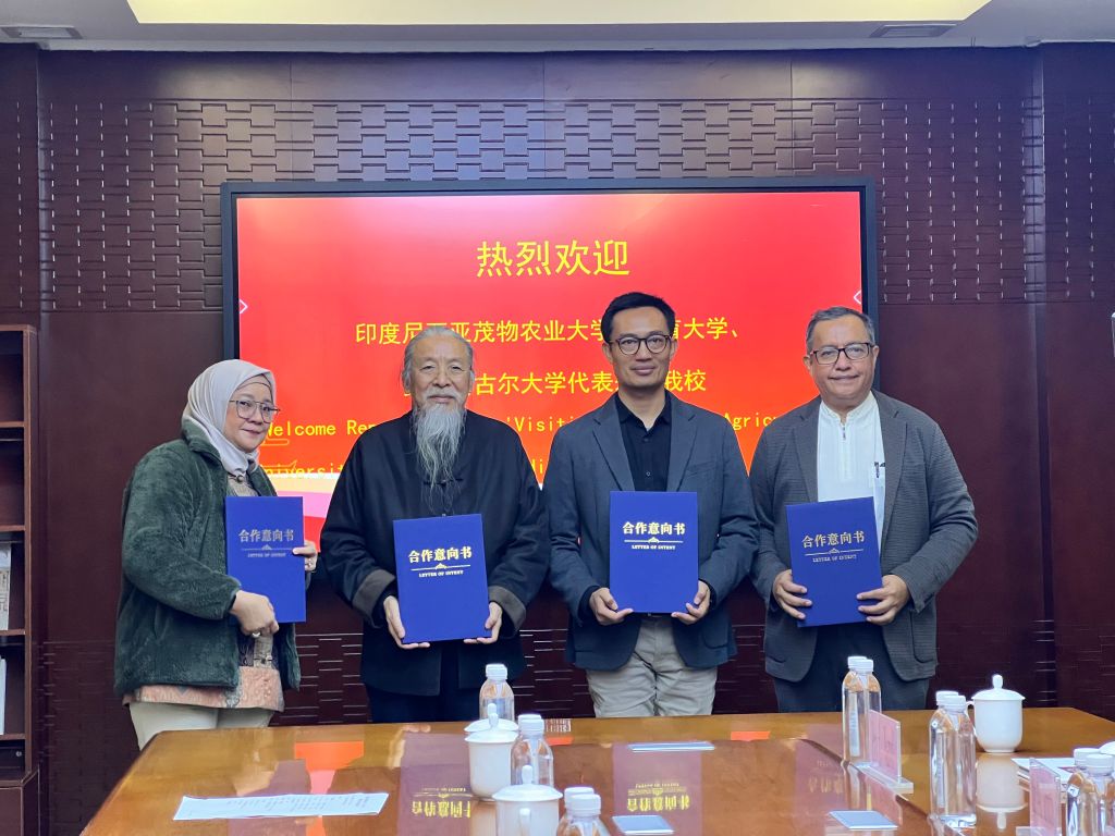11月25日上午,印度尼西亚茂物农业大学理事会主席Fachrizal Zain,教育大学校长助理Nandi,埃萨翁古尔大学副校长Rilla Gantino一行6人来beat365官网考察交流。beat365官网校长甄忠义,常务副校长张建敏,国际交流与合作中心主任兰新成、副主任郝金龙等人在仙聚山庄二楼会议室接待来宾。