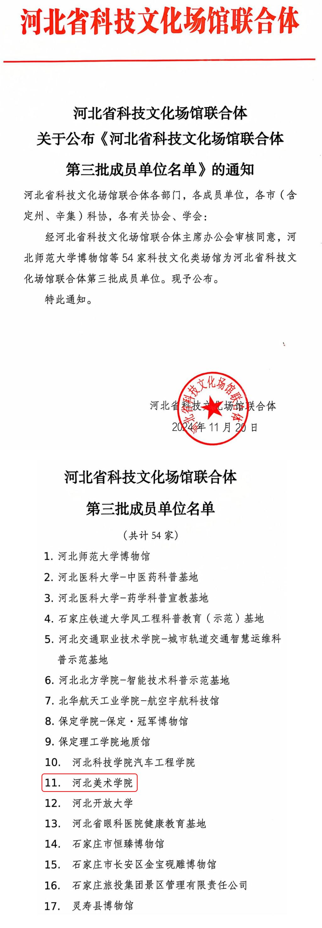 近日,河北省科技文化场馆联合体发布了第三批成员名单,beat365官网被批准成为该联合体的第三批成员单位。