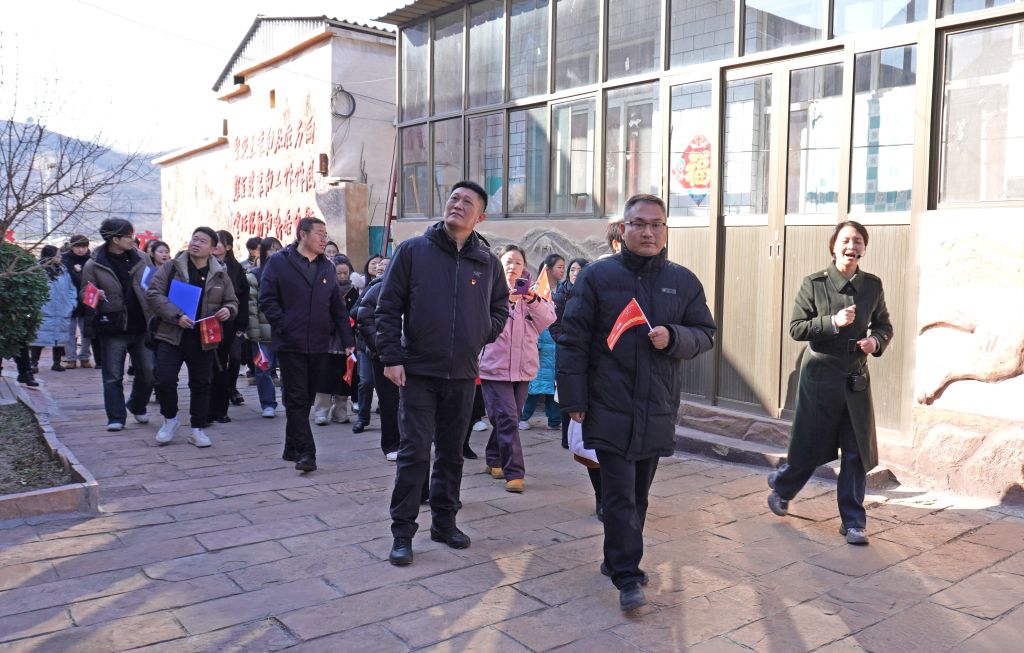 仪式结束后,全体人员分组参观抗大陈列馆、《开国元勋年画展》、抗大旧址村、“从延安到浆水”浮雕墙,通过一幅幅照片、一件件文物,学习革命历史、聆听红色故事、汲取奋进力量。