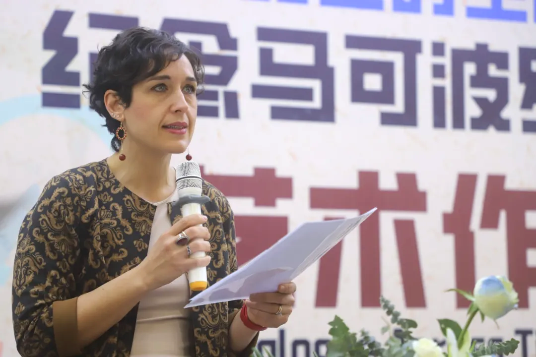 Elisa Messina致辞。她对本次活动的成功举办的热烈祝贺,并高度赞扬了学校卓越的教育质量和开放的国际视野。她希望未来中意双方能够继续加强交流与合作,共同书写中意两国在艺术与学术领域深度合作的新篇章。