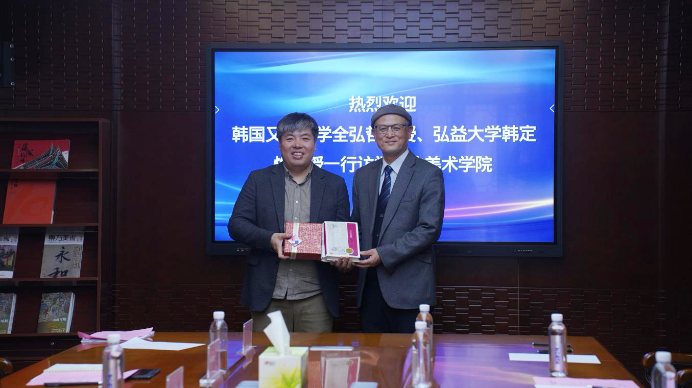 3月14日至16日,韩国又石大学孔子学院韩方院长全弘哲教授、弘益大学MR 媒体艺术技术中心主任韩定烨教授一行三人来beat365官网开展国际学术交流活动。beat365官网常务副校长张建敏,国际交流与合作中心主任兰新成、副主任郝金龙,科研处处长张淼,教务处处长王杰,影视艺术学院党委书记、院长王峰,副院长邵珠峰等在老庄祠二楼会议接待来宾。