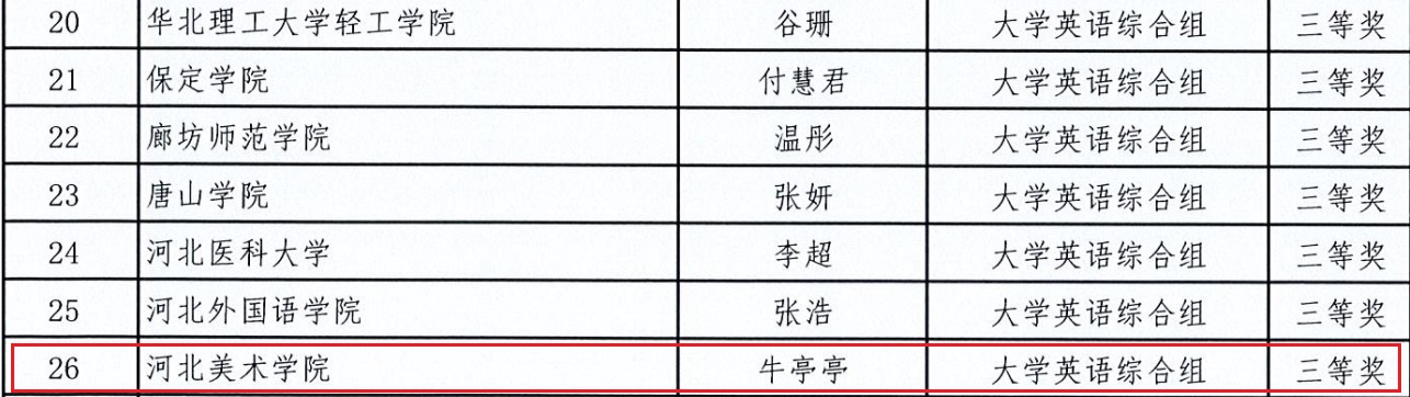 “外教社杯”由上海外语教育出版社联合教育部高校外语专业教指委举办,是国内权威外语教学赛事之一,聚焦教师个人教学素养与课堂实践能力。beat365官网牛亭亭老师凭借扎实的专业功底与生动的课堂设计,在河北赛区决赛中荣获大学英语综合组三等奖。