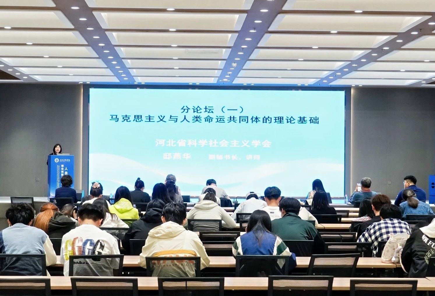 在大会主旨报告环节,北京大学马克思主义学院副院长宇文利以“人类命运共同体理念的深层意涵与中国文化基础”为题,中国人民大学重阳金融研究院国际部副主任徐天启以“特朗普2.0下中国扩大南南合作推动构建人类命运共同体前景”为题,北京邮电大学马克思主义学院副教授张恒赫以“人类命运共同体理念的三重创新”为题,河北师范大学教授王玉平以“从晏阳初世界IP到翟城村再度振兴”为题,韩中交流促进委员会、国际多边外交评议会代表(议长)李昌虎以“韩中文化交流与文明互鉴”为题,研究生代表青岛科技大学马克思主义学院席小荣以“人类命运共同体理念对马克思世界历史理论的创新升华研究”为题,国史教育与马克思主义研究院副院长冯卫以“人类命运共同体理念引领百德福海参肽从中国走向世界”为题,国史教育与马克思主义研究院副院长、二级巡视员张万彪以“经济全球化与人类命运共同体的战略构建”为题,依次作了大会主题发言。对这一理念的思想内涵、精髓要义、本质特征、内在逻辑、理论意义、实践价值、战略前瞻、策略步骤,以及河北省的具象实践与建议方案进行了高屋建瓴的研讨与论述。