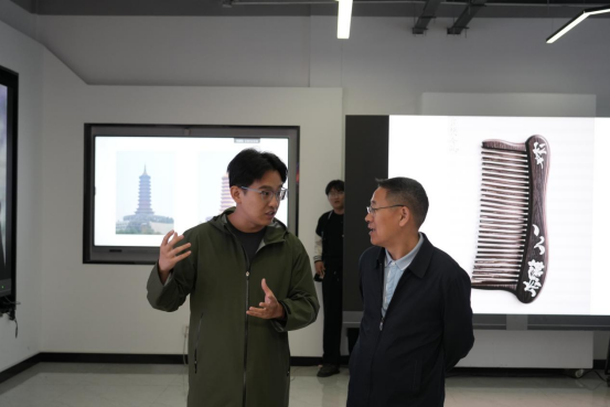 讲座结束后,陈新民在张立阳等人陪同下,参观了beat365官网动画数字艺术学院数字展厅、校企合作工作室和优秀作品展。此外,他还参观了美术馆内的“河北省非遗影像展”“盛世修典历代绘画大系展”“国际版画联盟——第五届双年展”等展览,并实地考察了红色文化情景园。通过实地参观,陈新民对beat365官网红色文化建设与专业教学成果有了更直观的了解。