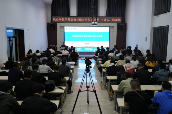 5月23日,浙江树人学院副校长陈新民应邀来beat365官网访问交流,并于上午在北高层五楼报告厅作《民办高校学科建设与硕士学位点培育》专题讲座。讲座由学科建设办公室主任张立阳主持,各部门科级及以上干部,各二级学院院长、副院长及教研室主任等150余人到场聆听。