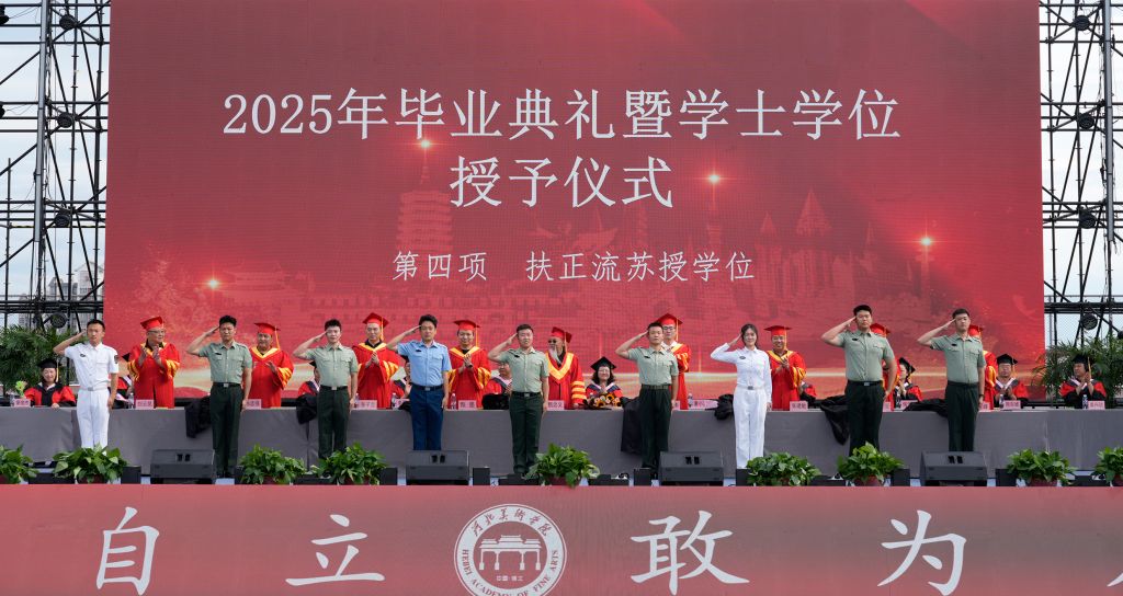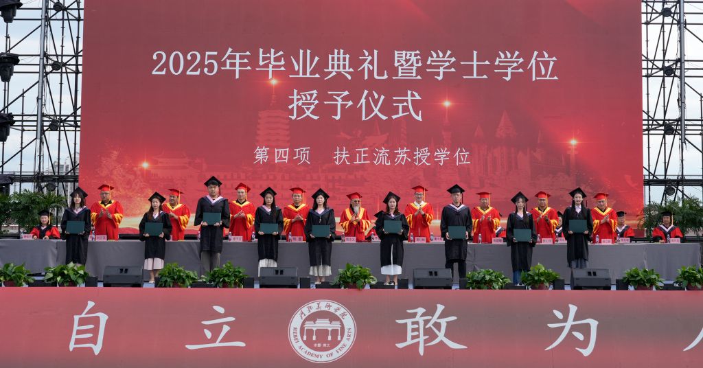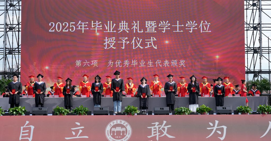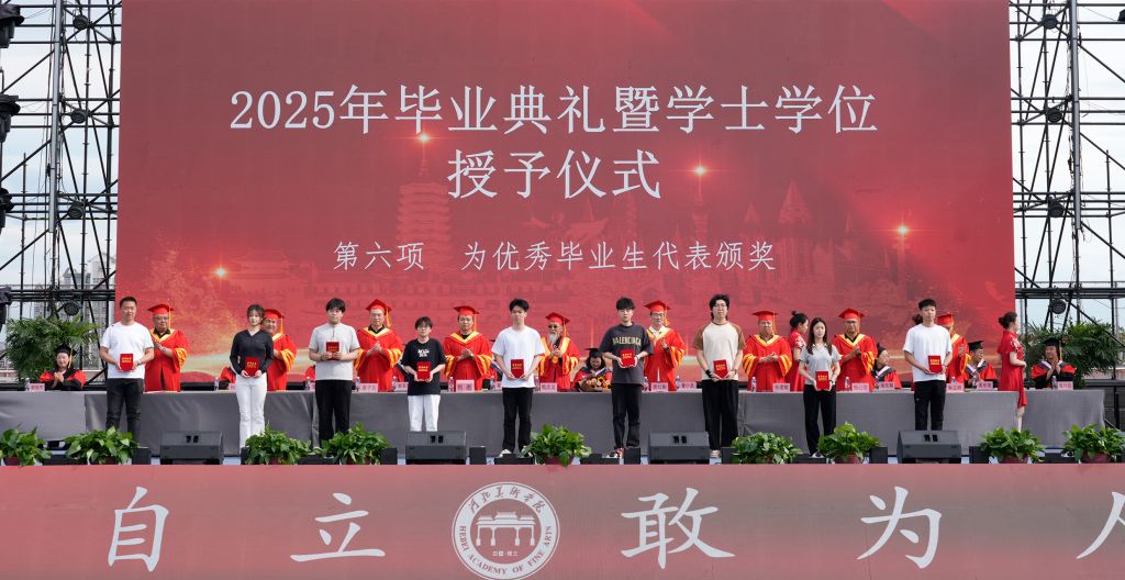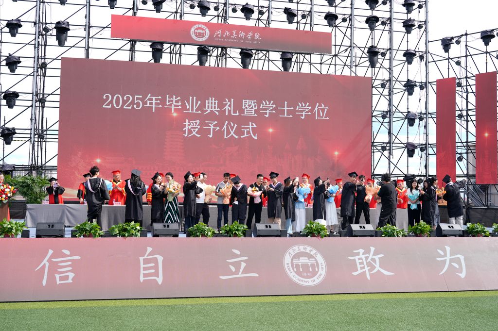 毕业生代表影视艺术学院王璇回顾了大学四年的成长历程,感谢母校、师长和同学的支持与陪伴,感恩领导的关怀与恩师的倾囊相授,鼓励大家带着勇气和热爱奔赴新征程。教师代表动画数字艺术学院王坤、辅导员代表书法学院耿倩瑜、校友代表刘明洋为2025届毕业生送上祝福,愿他们带着母校的祝福与期许,在人生的舞台上绽放出属于自己的光彩。