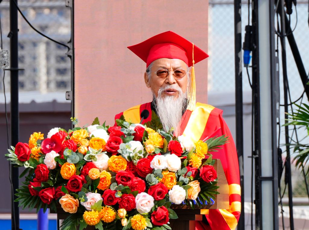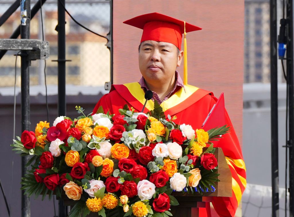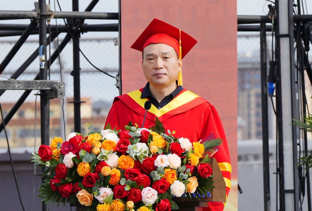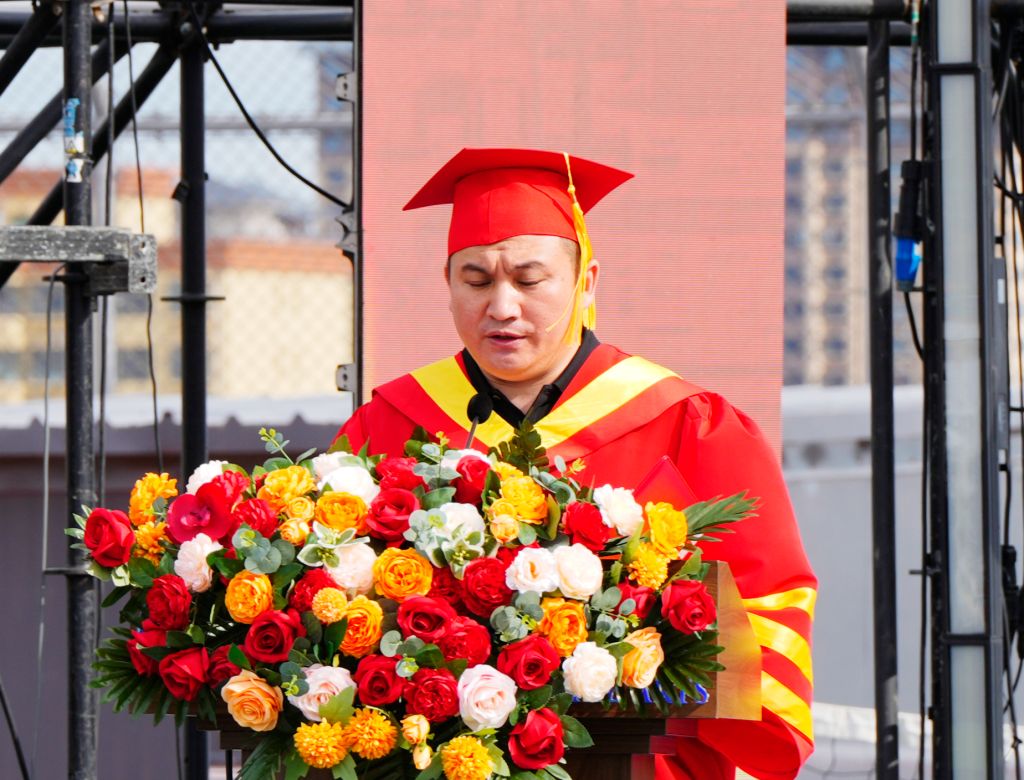 校长甄忠义代表学校向毕业学子送上诚挚祝福。他希望大家面对未知挑战时,要相信国家,在新征程里寻找生命的坐标;相信时代,在变局中抓住成长的机遇;相信自己,在奋进中积蓄向上的力量,努力成为时代的掌灯人。面对离别,他强调,母校永远是大家的港湾,无论未来走向何方,母校这盏永不熄灭的灯塔,将始终关注、祝福并支持每一位学子,做他们最坚实的后盾。