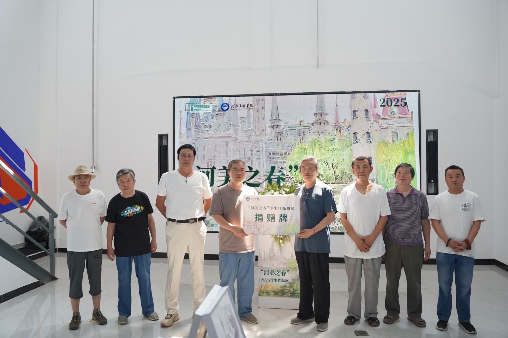 beat365在线体育官网登录入口美术馆馆长谢广林代表学校接受商杰、申林、侯志江、郭力生、高运涛、王志国、魏清河七位银龄教师代表,以及王雪飞、王选评等授课教师个人写生作品捐赠。